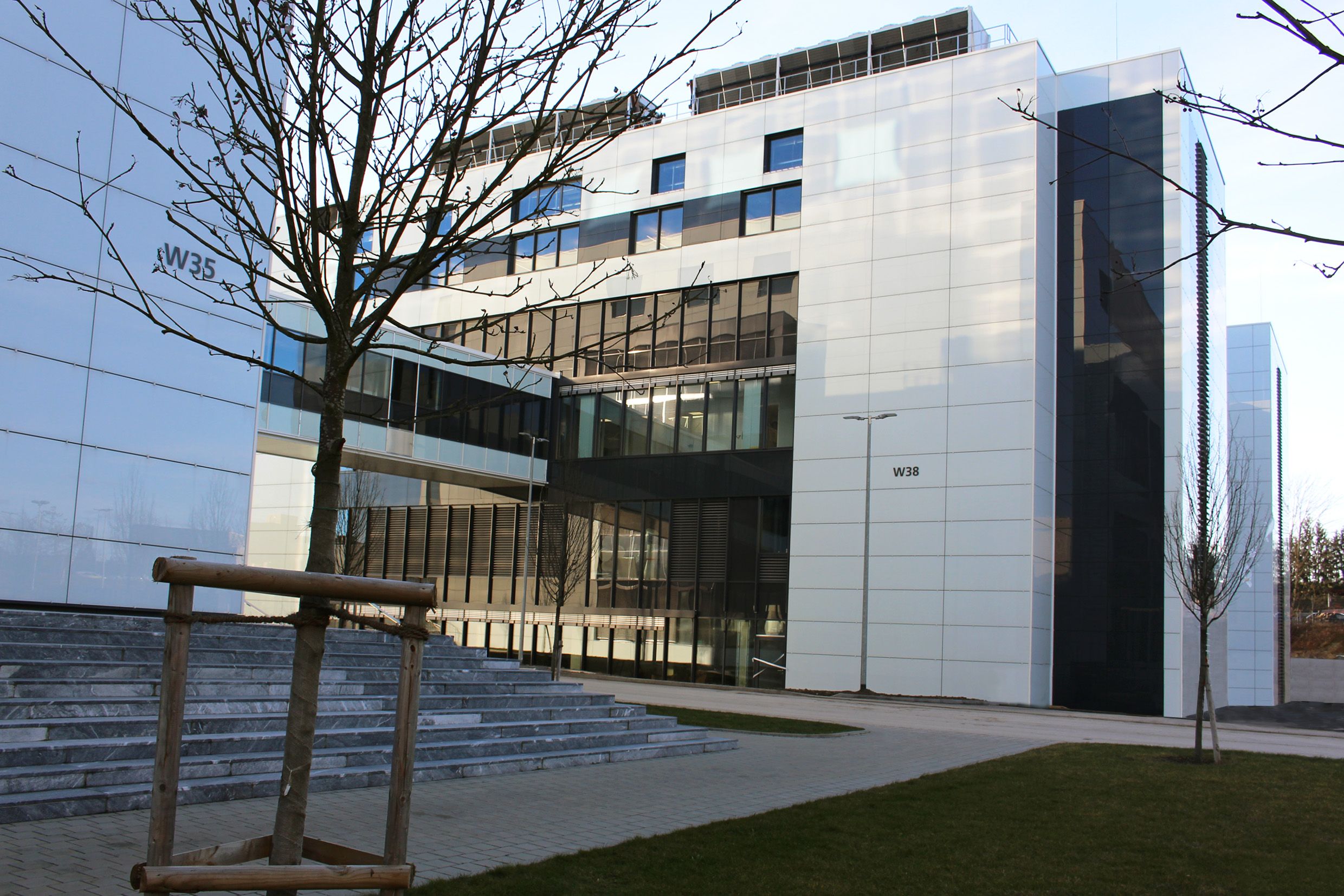 Das Gebäude W38 umfasst ein Erdgeschoss sowie drei Obergeschosse mit jeweils ca. 2.330 m² Nutzfläche. Im zweiten Obergeschoss ist W38 über eine Brückenverbindung direkt an W35 angebunden, wodurch eine effiziente interne Erschließung gewährleistet wird.